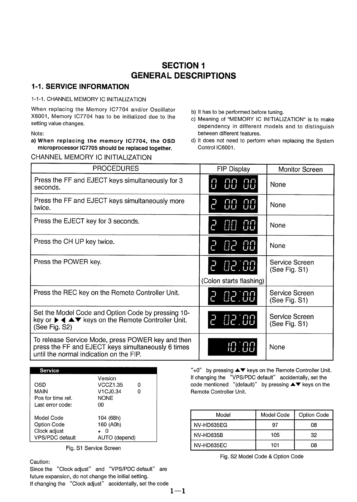 Panasonic NV-HD635 - General Descriptions; Service Information; Channel Memory IC Initialization