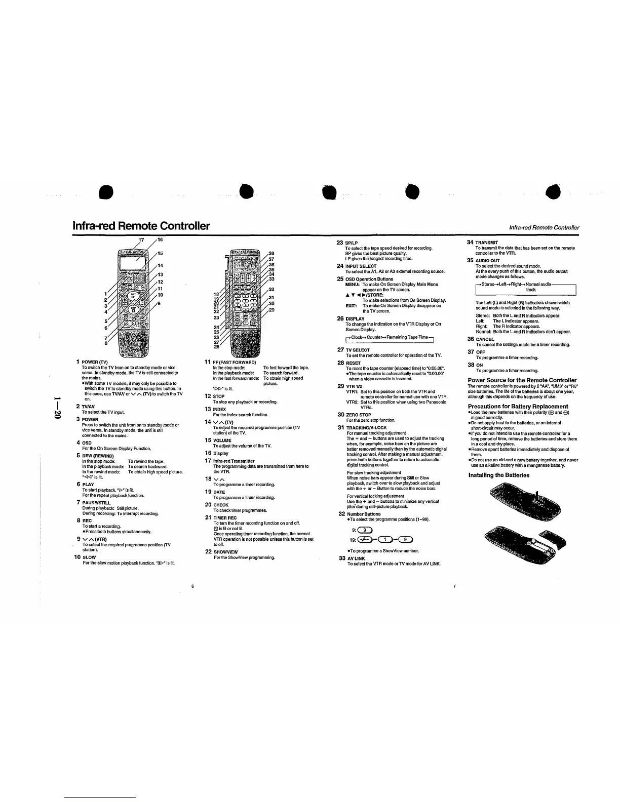 Panasonic NV-HD650 - Infra-Red Remote Controller