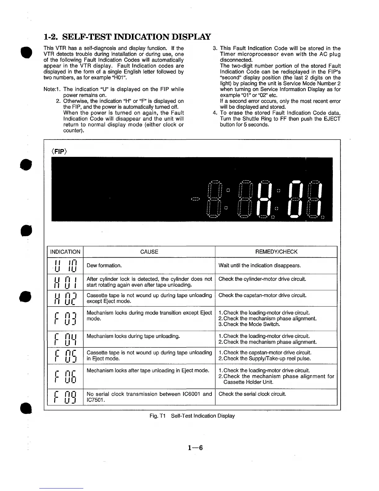 Panasonic NV-HD650 - SECTION 1.2 TROUBLESHOOTING AND DIAGNOSTICS; 1-2. SELF-TEST INDICATION DISPLAY