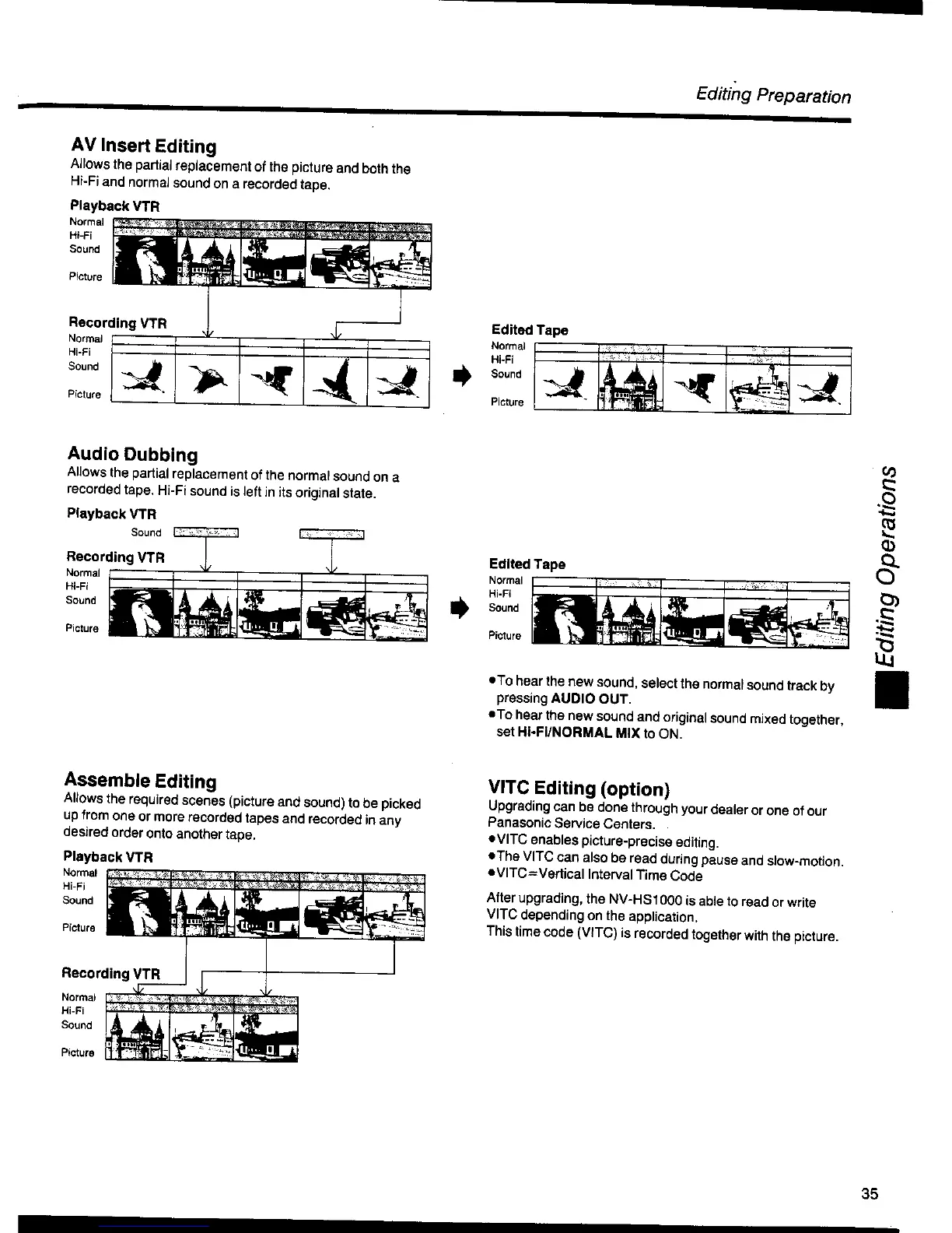 Panasonic NV-HS1000EC - Editing Operation Details; AV Insert Editing and Audio Dubbing; Assemble Editing Process; VITC Editing (Optional)