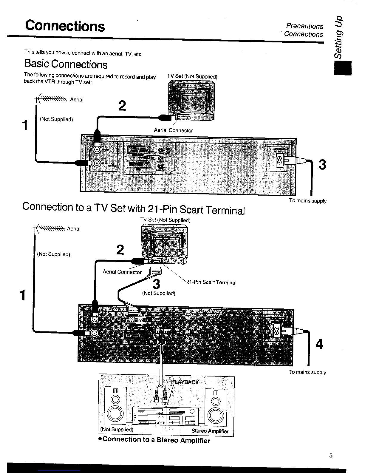 Panasonic NV-HS1000EC - Connecting Your VTR; Basic Connections to TV; Scart Terminal Connection; Stereo Amplifier Connection