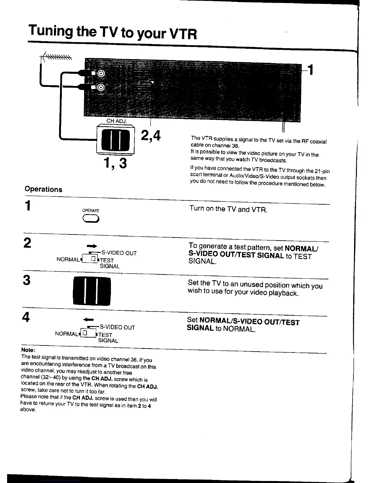 Panasonic NV-HS1000EC - Tuning Your TV to the VTR; Setting Up for TV Tuning; RF Channel Adjustment