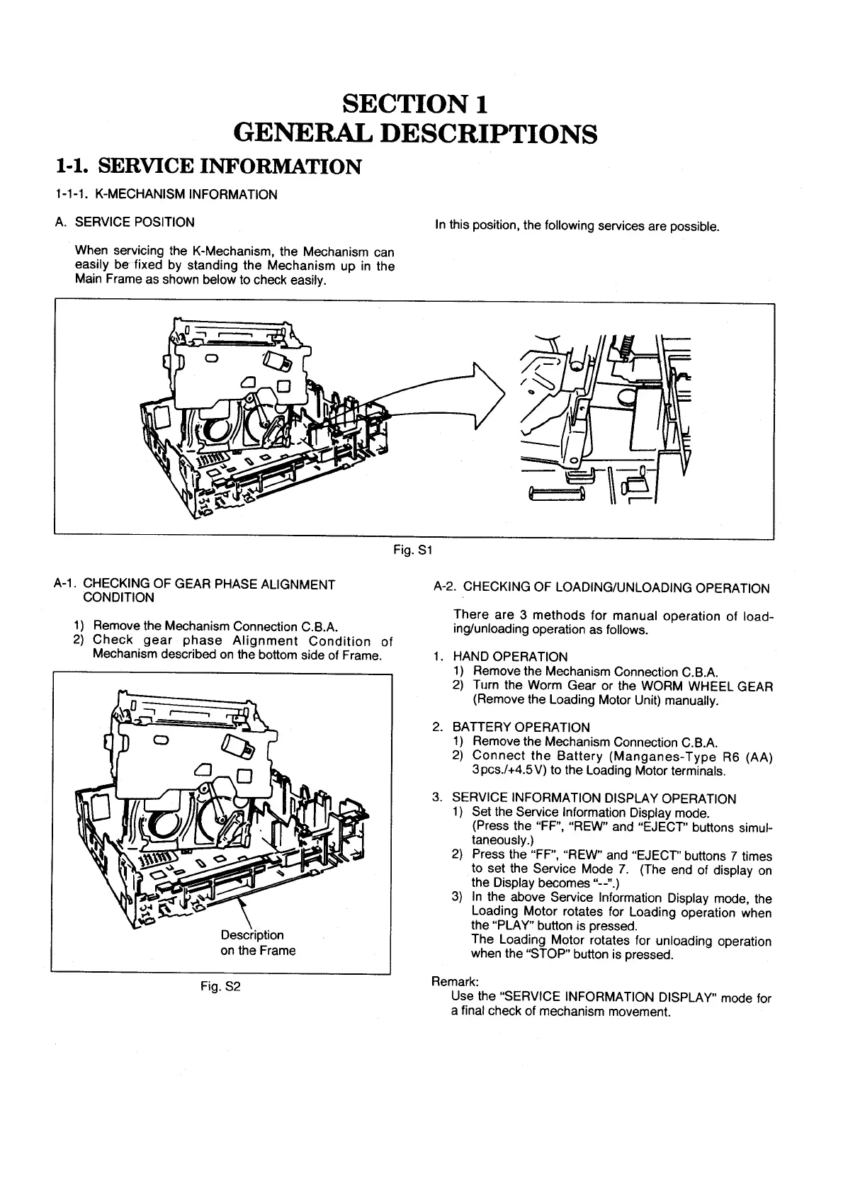 Panasonic NV-HS800 - General Descriptions; Service Information; K-Mechanism Information; Service Position