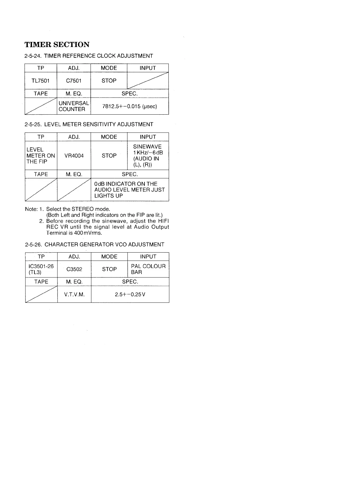 Panasonic NV-HS800 - Timer Section; Timer Reference Clock Adjustment; Level Meter Sensitivity Adjustment; Character Generator VCO Adjustment