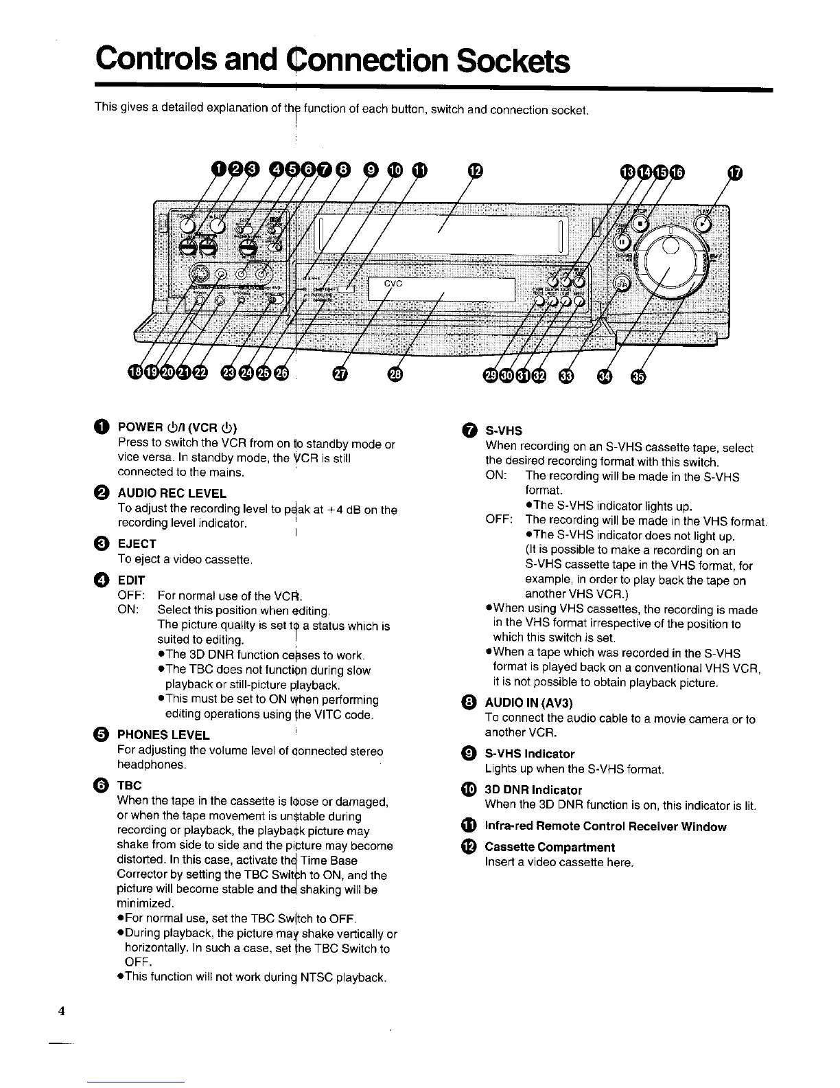 Panasonic NV-HS950AM - VCR Controls and Connections; Panel Controls and Sockets