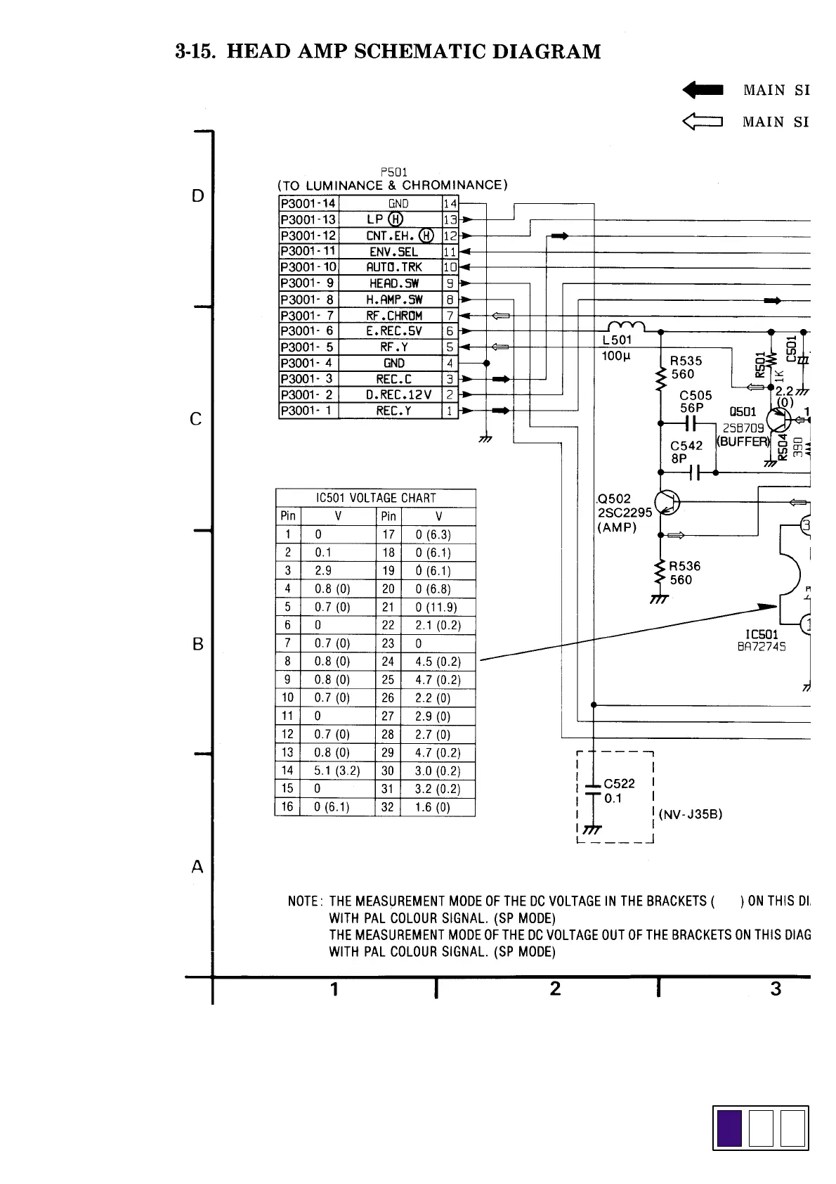 Panasonic NV-J35 - Head Amplifier Schematic Diagram and Voltages