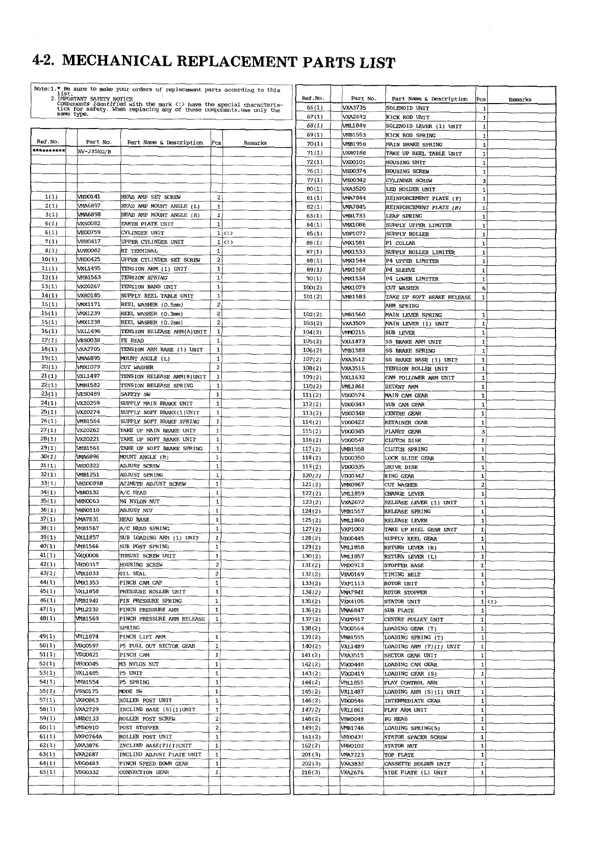 Panasonic NV-J35 - Mechanical Parts Replacement List