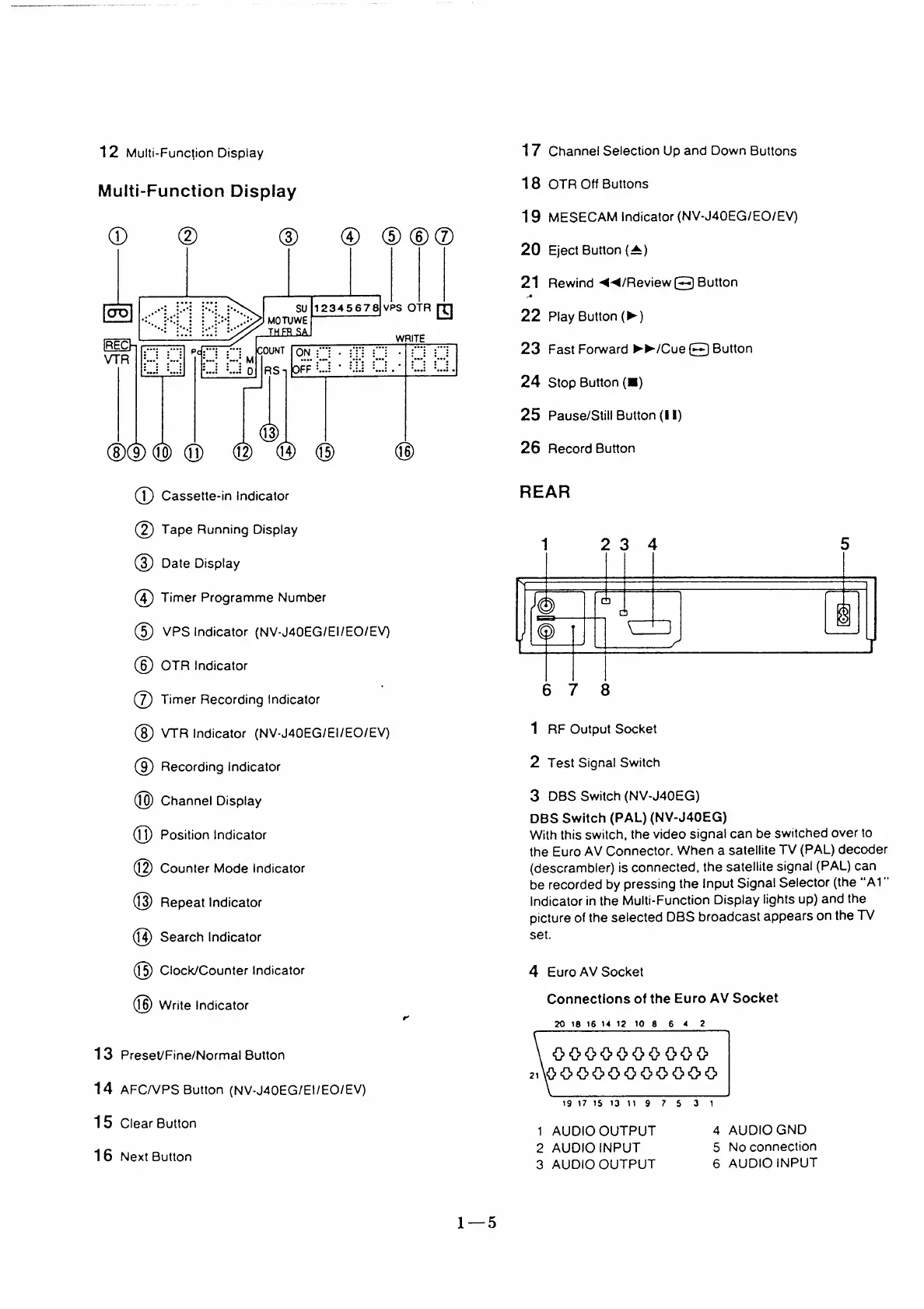 Panasonic NV-J40 - Multi-Function Display; Rear