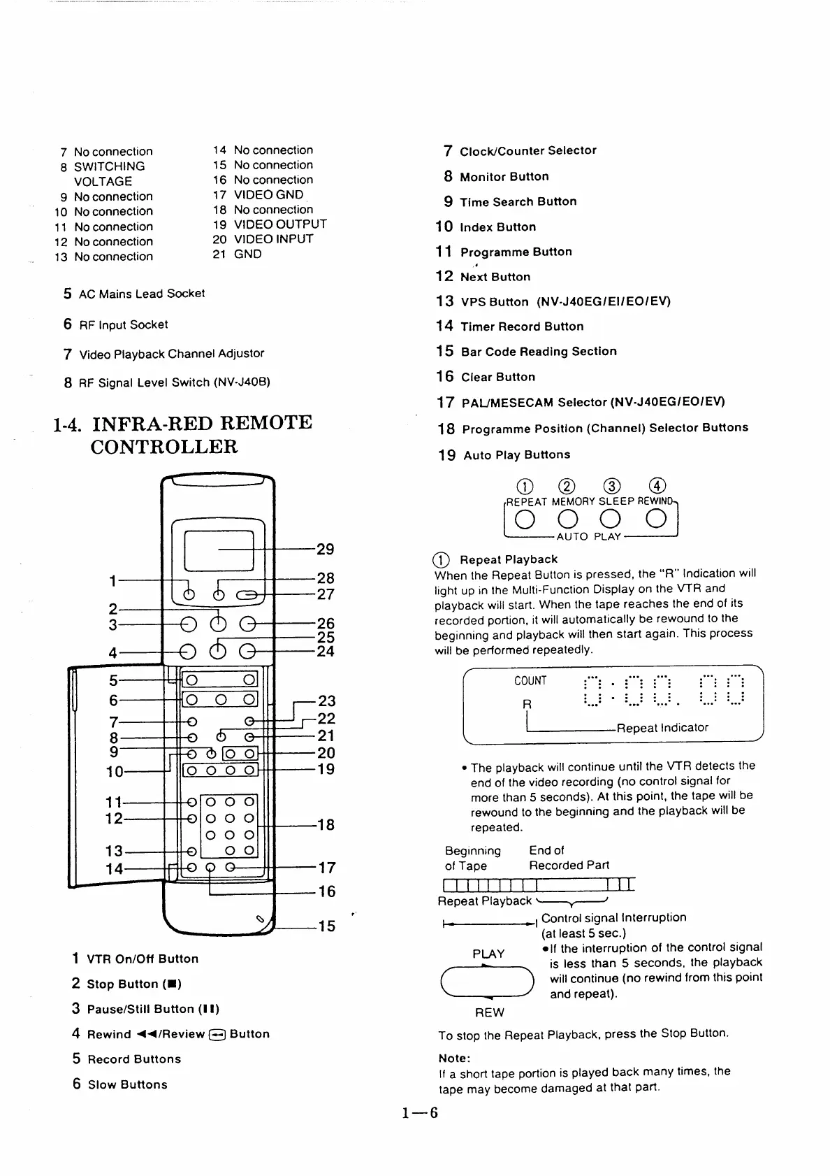 Panasonic NV-J40 - Infra-Red Remote Controller; Repeat Playback