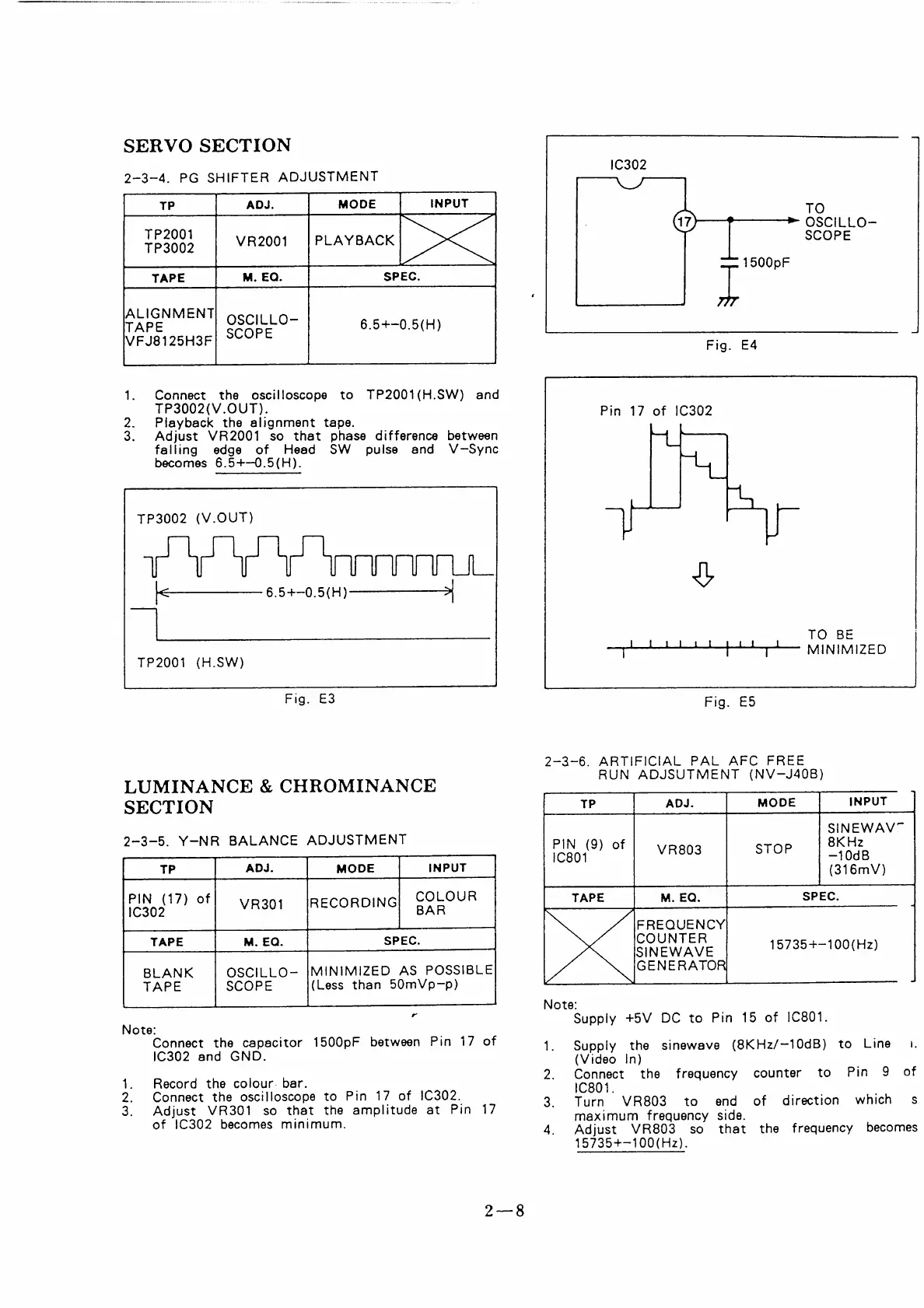 Panasonic NV-J40 - Servo Section; Luminance & Chrominance Section; PG Shifter Adjustment; Y-NR Balance Adjustment