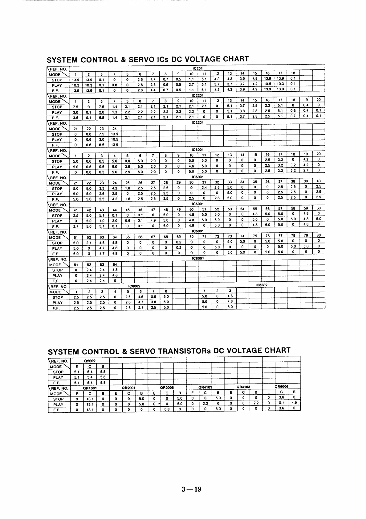 Panasonic NV-J40 - System Control & Servo Ics DV Voltage Chart; System Control & Servo Transistors DC Voltage Chart