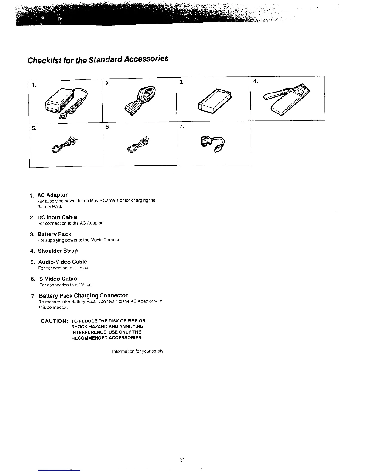 Panasonic NV-MS4A - Standard Accessories Checklist; Information for Your Safety