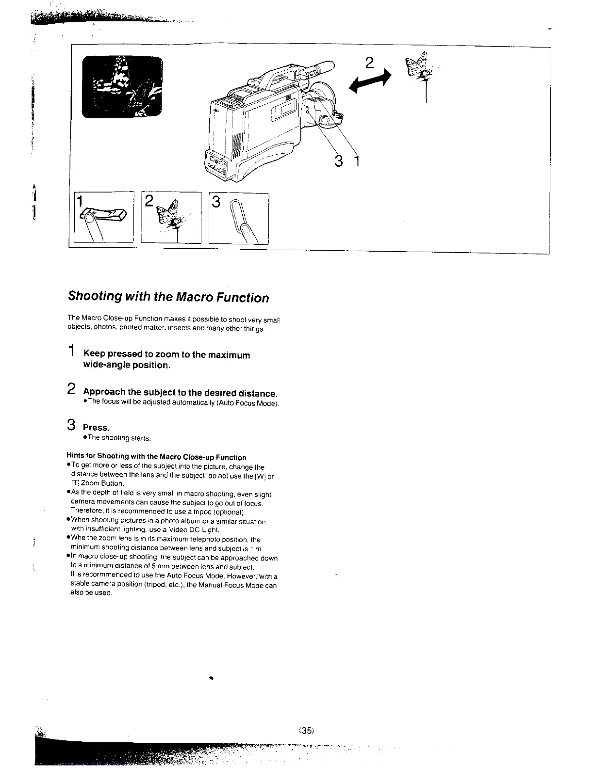 Panasonic NV-MS4A - Macro Function Shooting; Shooting with the Macro Function; Tips for Macro Shooting