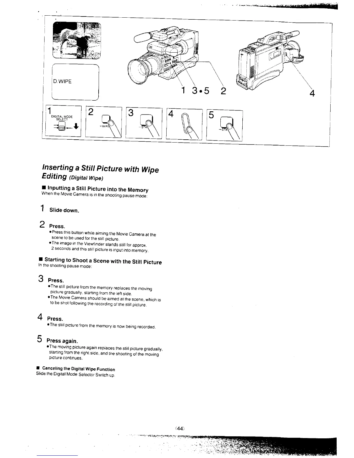 Panasonic NV-MS4A - Still Picture Insertion with Editing; Inputting Still Picture into Memory; Shooting Scene with Still Picture Insert