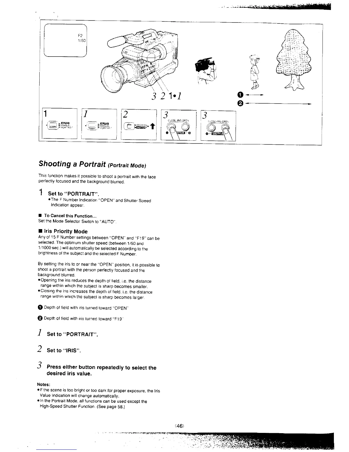 Panasonic NV-MS4A - Portrait Shooting; Shooting a Portrait (Portrait Mode); Iris Priority Mode for Portraits