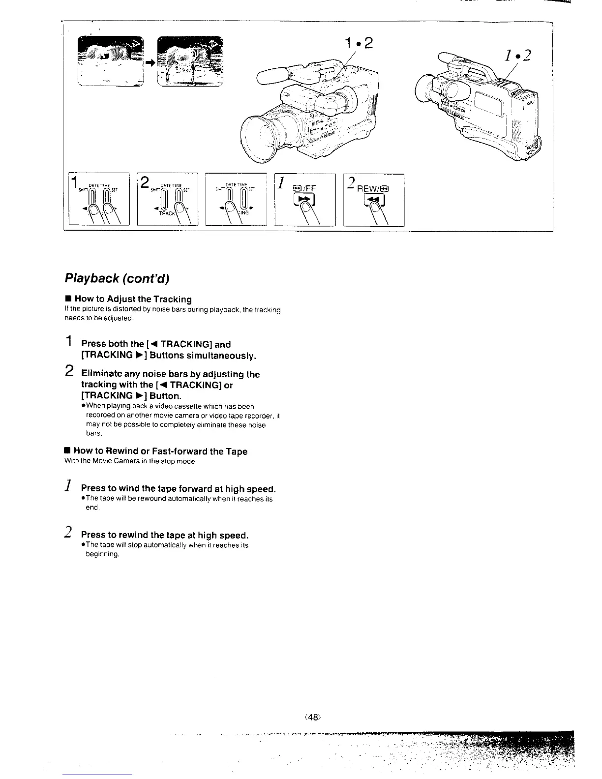 Panasonic NV-MS4A - Adjusting Tape Tracking; Rewinding and Fast-Forwarding Tape