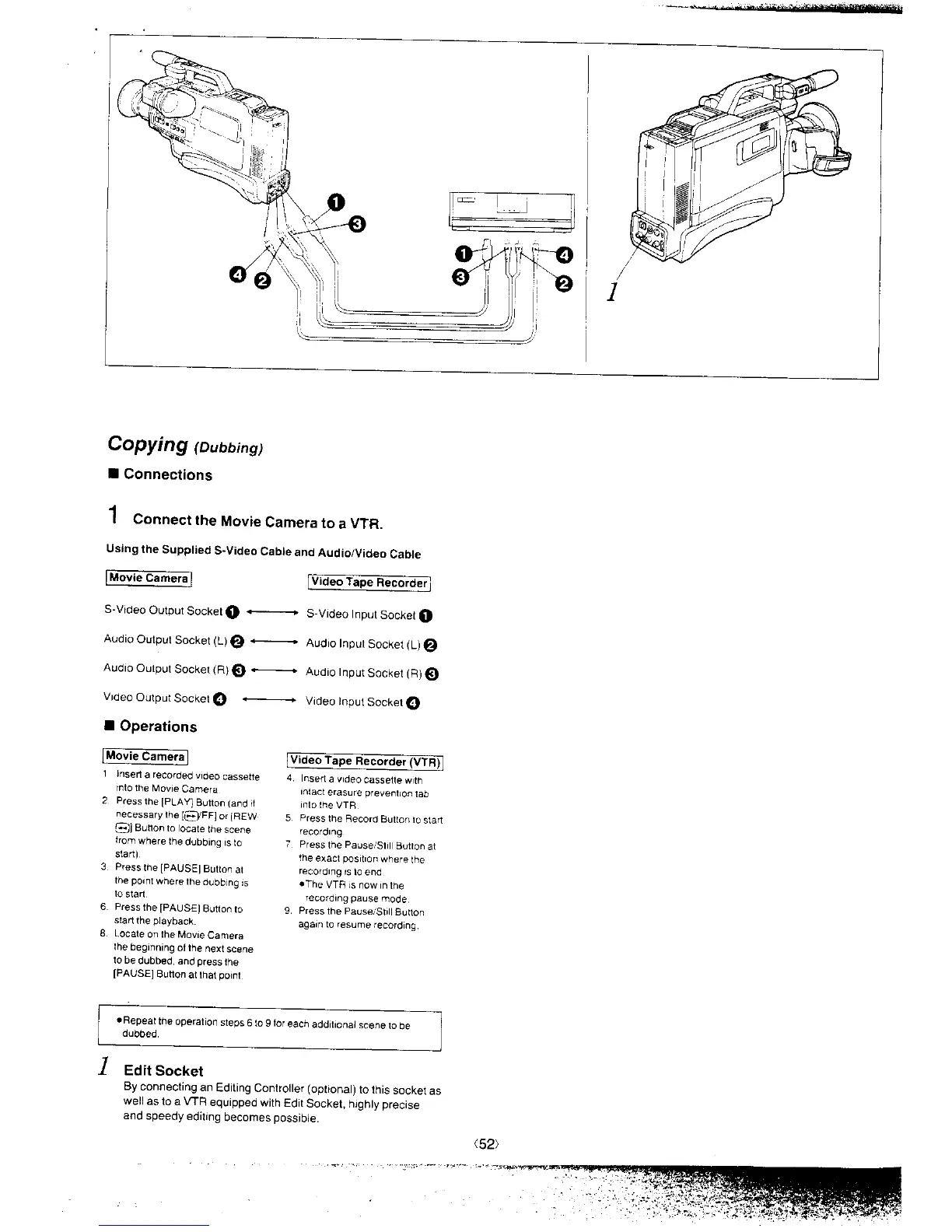Panasonic NV-MS4A - Copying and Dubbing; Connections for Copying; Copying Operations; Using the Edit Socket
