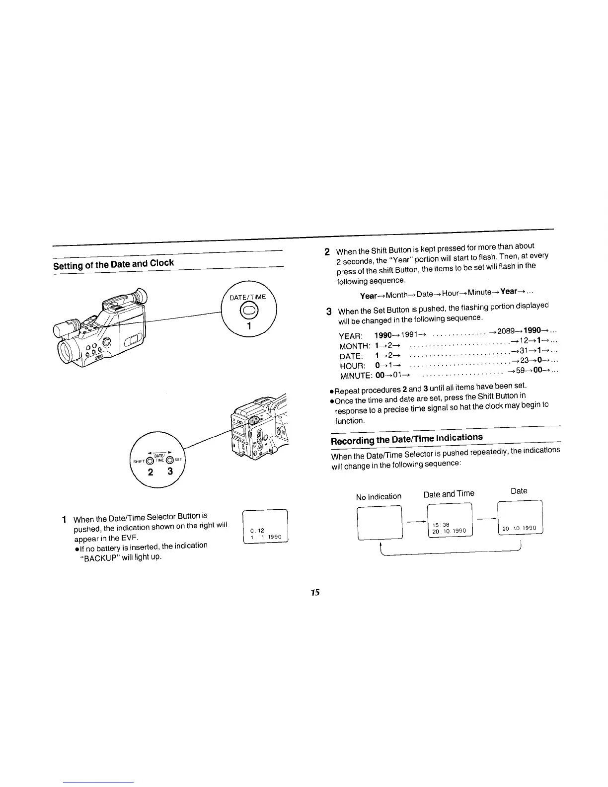 Panasonic NV-MS70B - Setting of the Date and Clock; Recording the Date;Time Indications