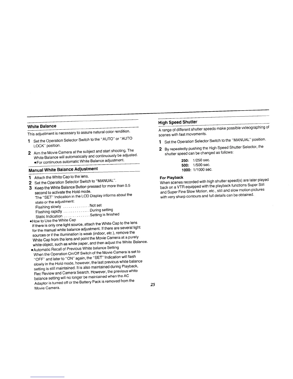 Panasonic NV-MS70B - Manual White Balance Adjustment; High Speed Shutter