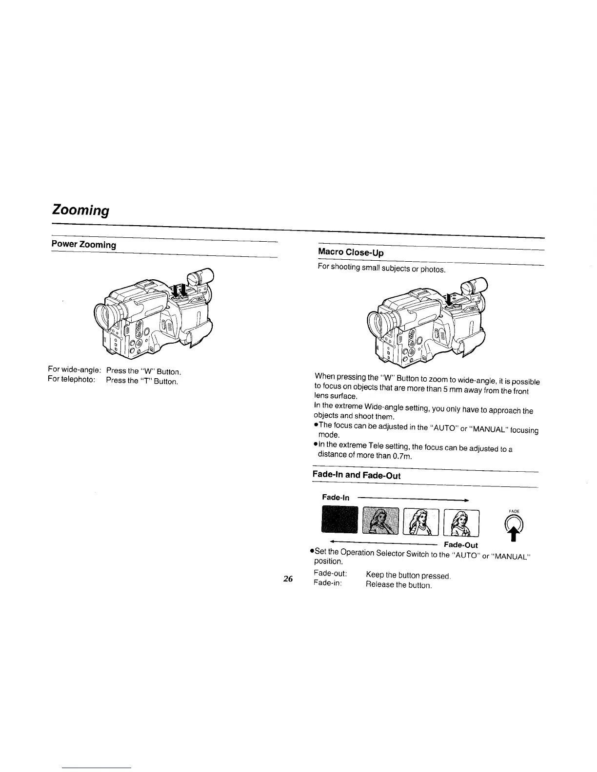 Panasonic NV-MS70B - Power Zooming; Macro Close-Up; Fade-In and Fade-Out