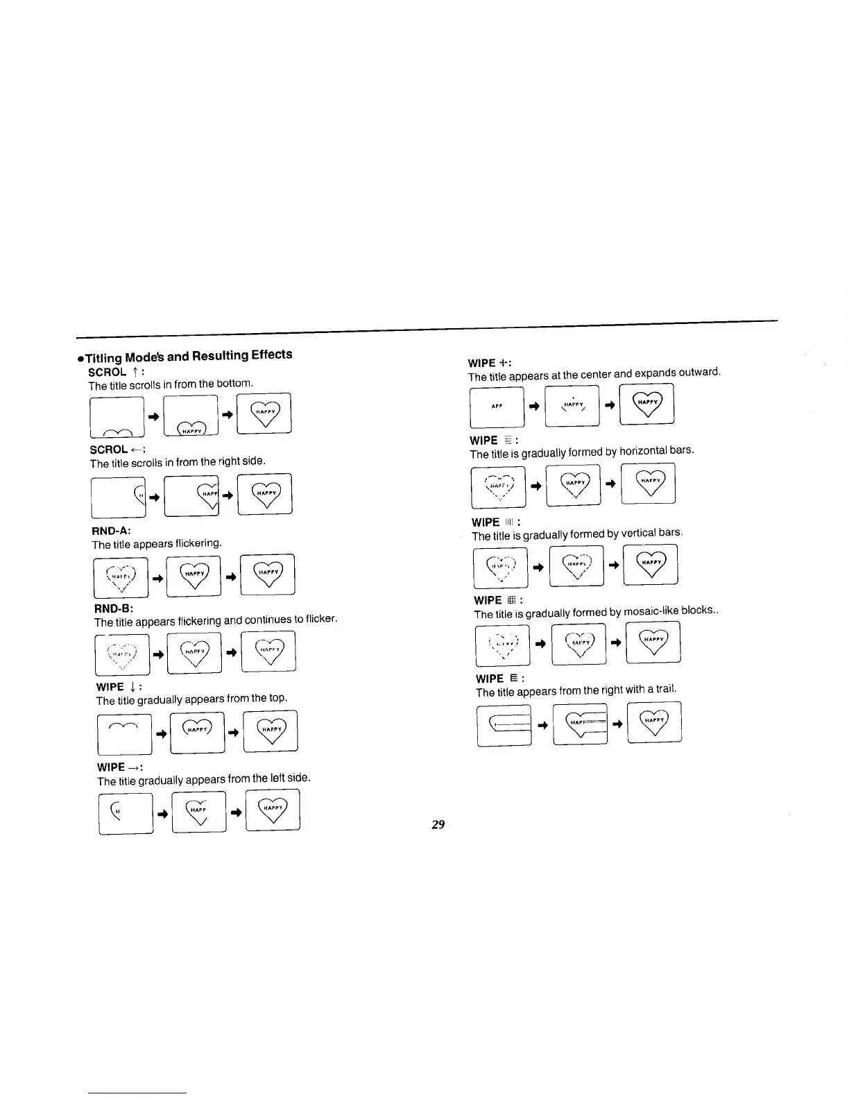 Panasonic NV-MS70B - Titling Modes and Resulting Effects