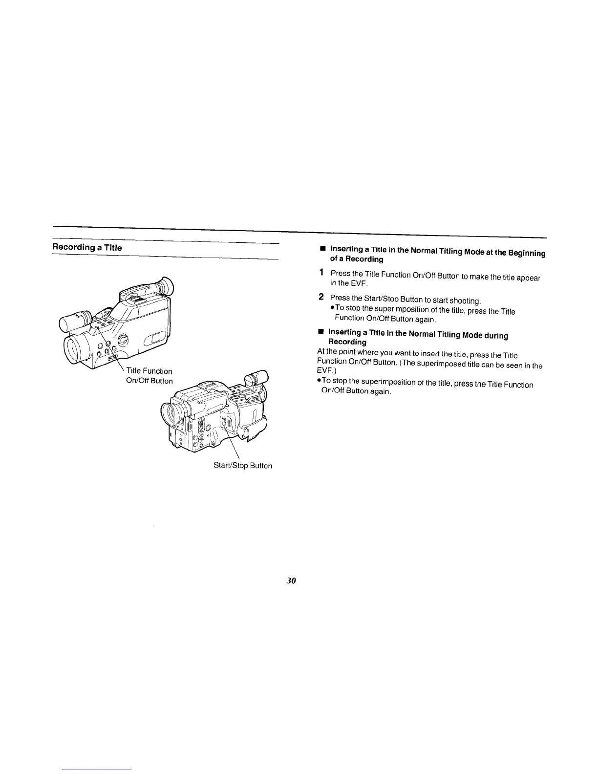 Panasonic NV-MS70B - Recording a Title; Inserting a Title in Normal Tilting Mode at Beginning of a Recording; Inserting a Title in the Normal Titling Mode During Recording