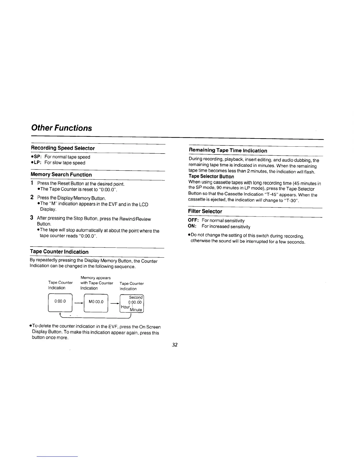 Panasonic NV-MS70B - Other Functions: Speed, Search, and Signals