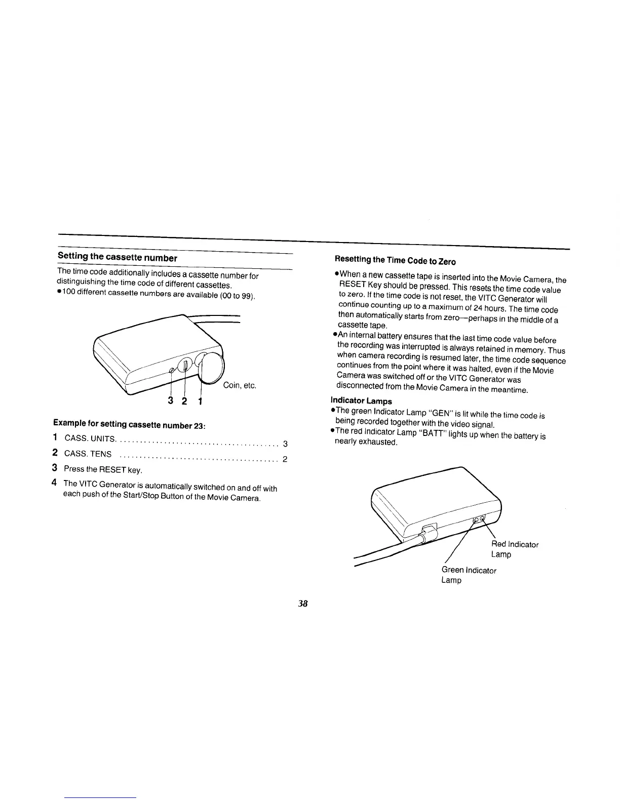 Panasonic NV-MS70B - Setting the Cassette Number; Resetting the Time Code to Zero