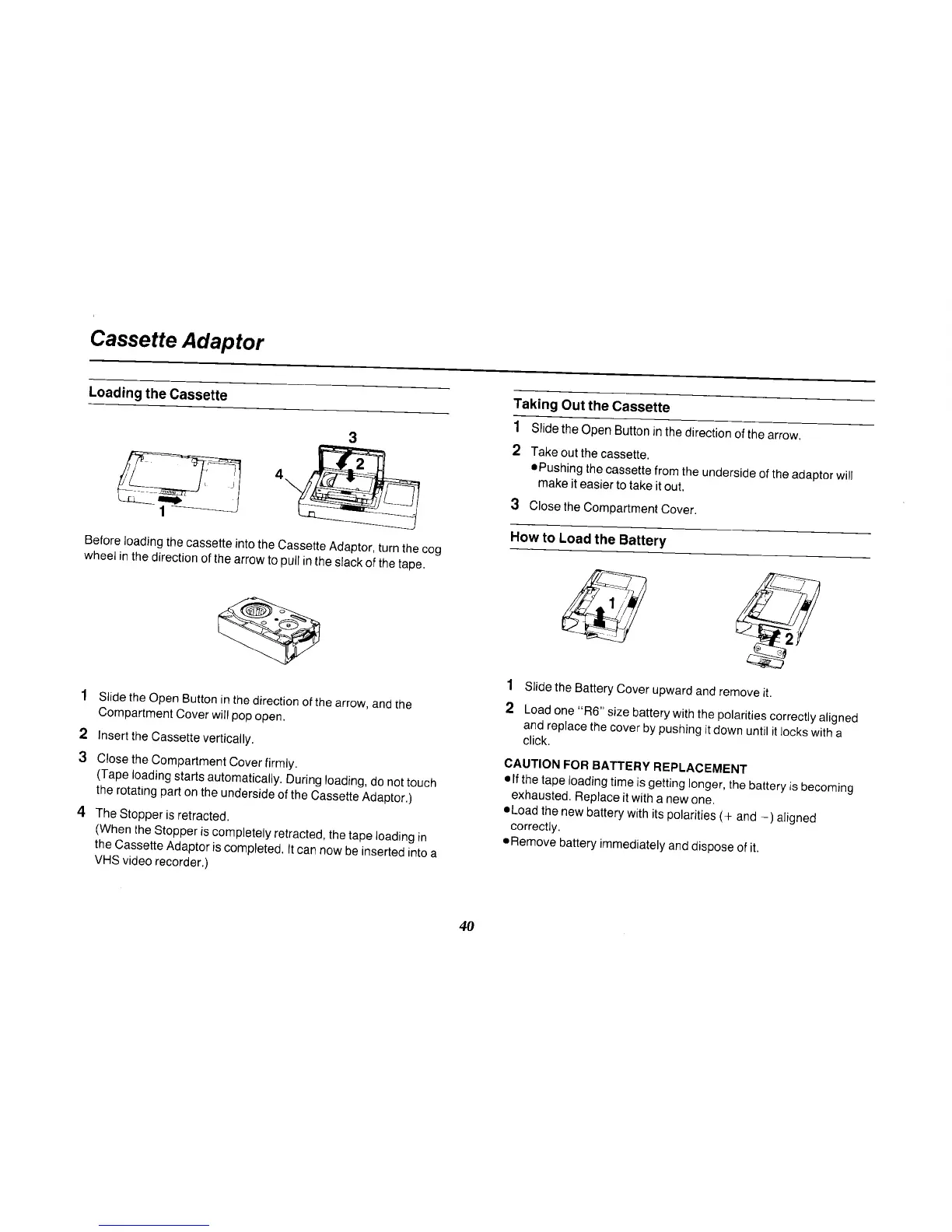 Panasonic NV-MS70B - Cassette Adaptor; Loading the Cassette; Taking out the Cassette; How to Load the Battery