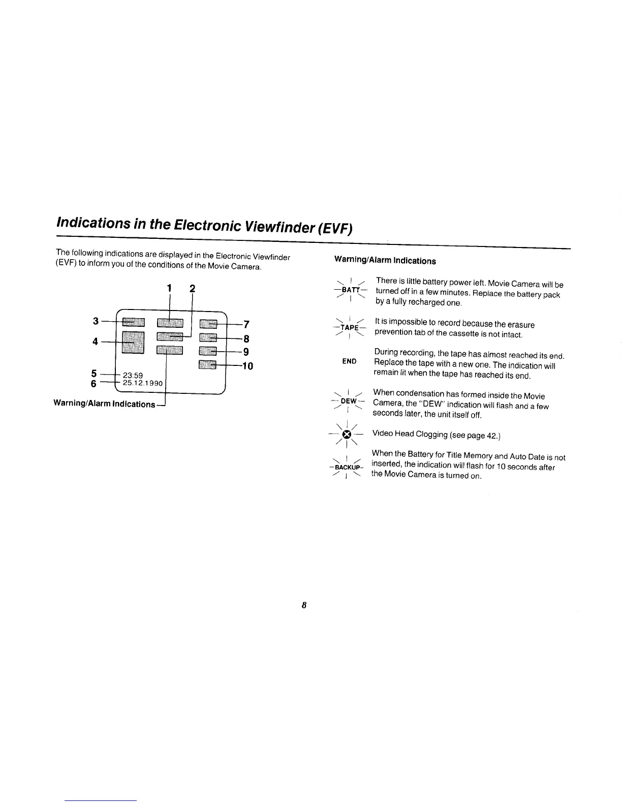 Panasonic NV-MS70B - Viewfinder and Display Information
