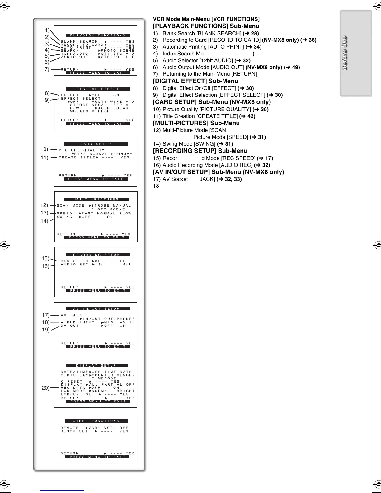 [CARD SETUP] Sub-Menu (NV-MX8 only)