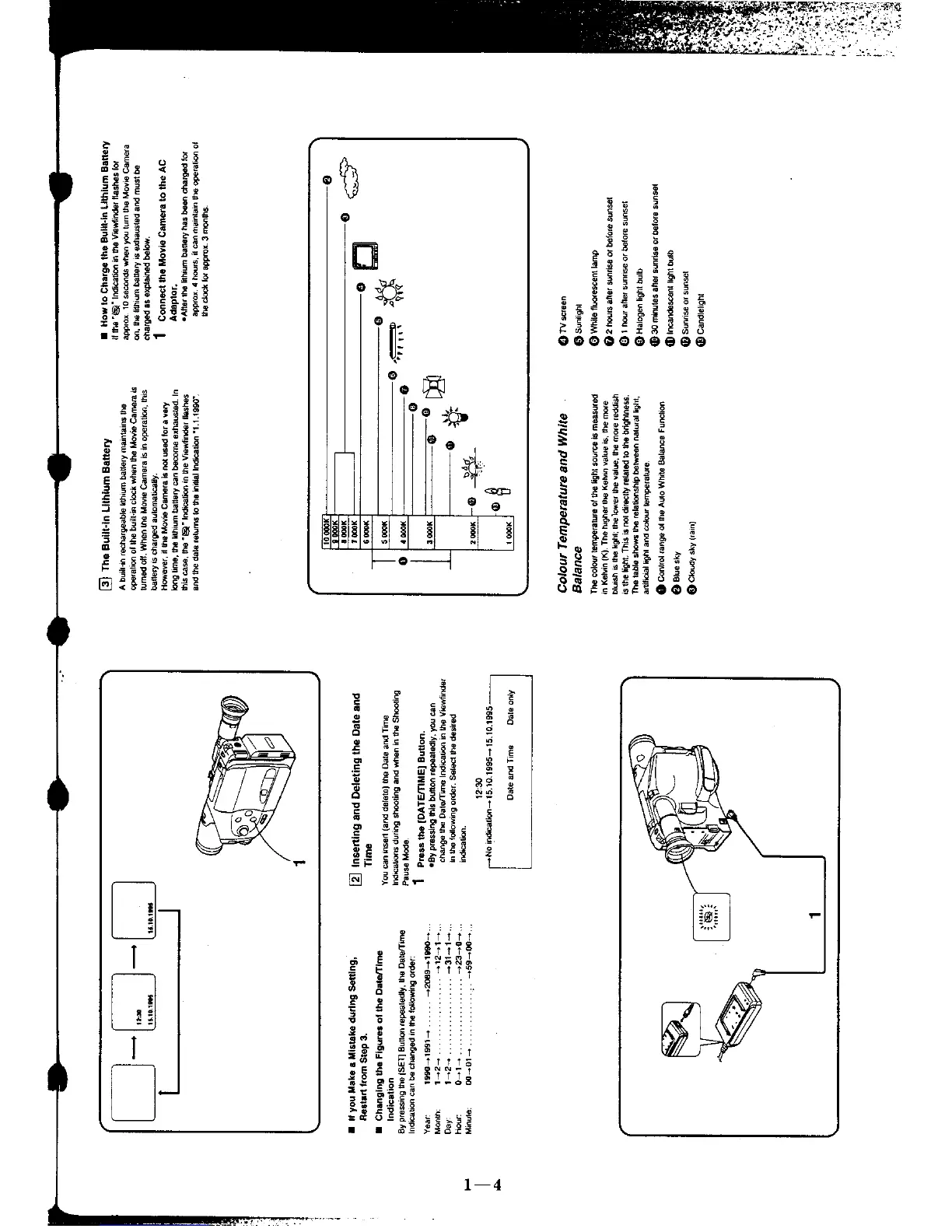 Panasonic NV-R33E - Battery and Time Settings; Charging the Built-in Lithium Battery; Setting Date and Time; Color Temperature and White Balance
