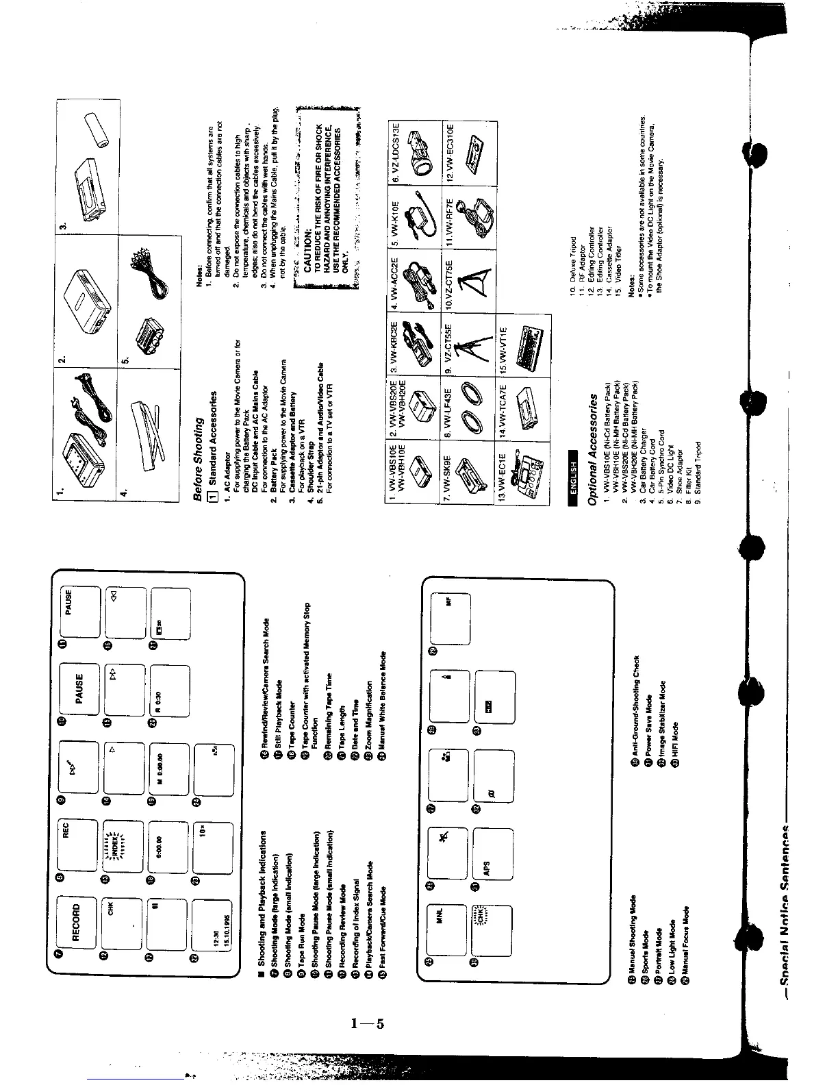 Panasonic NV-R33E - Shooting and Accessories; Shooting and Playback Indications; Standard Accessories; Optional Accessories