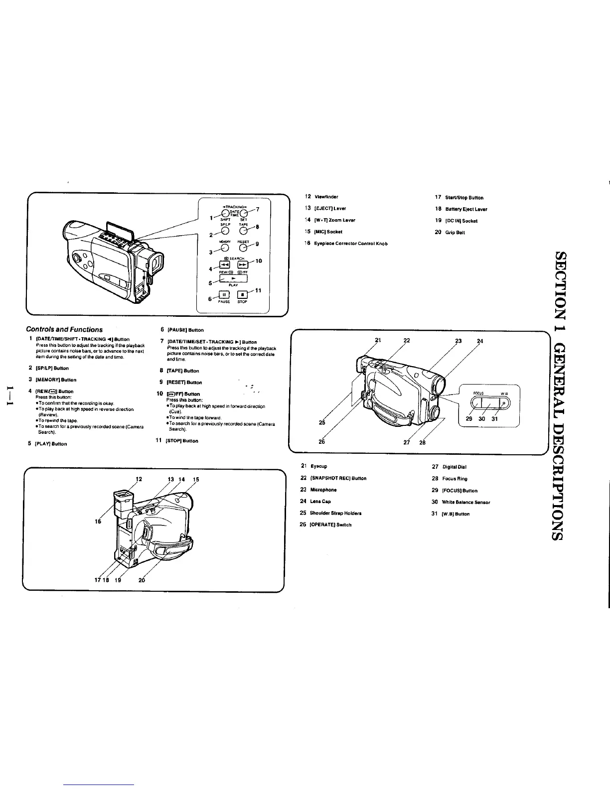 Panasonic NV-R50B - Controls and Functions; Top and Side Controls; Front and Grip Controls