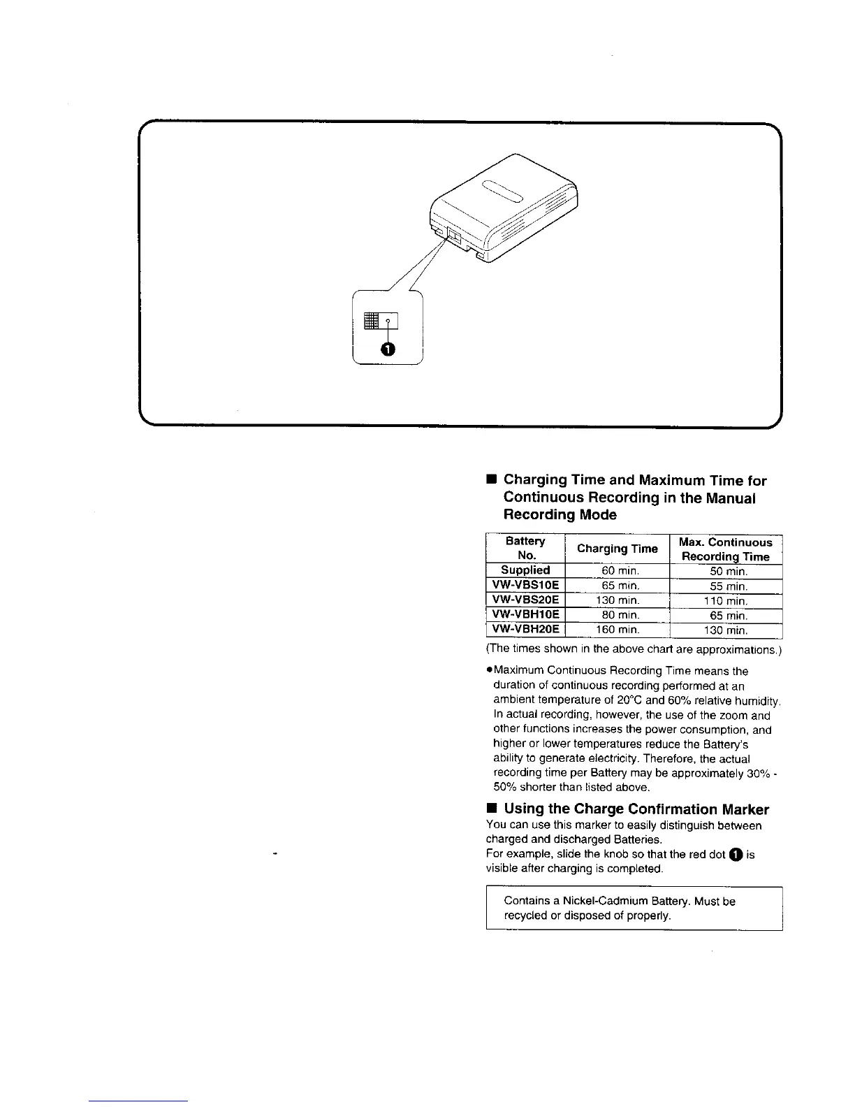 Panasonic NV-RX10A - Charging;Maximum Time for Continuous Recording in the Manual Mode; Using the Charge Confirmation Marker