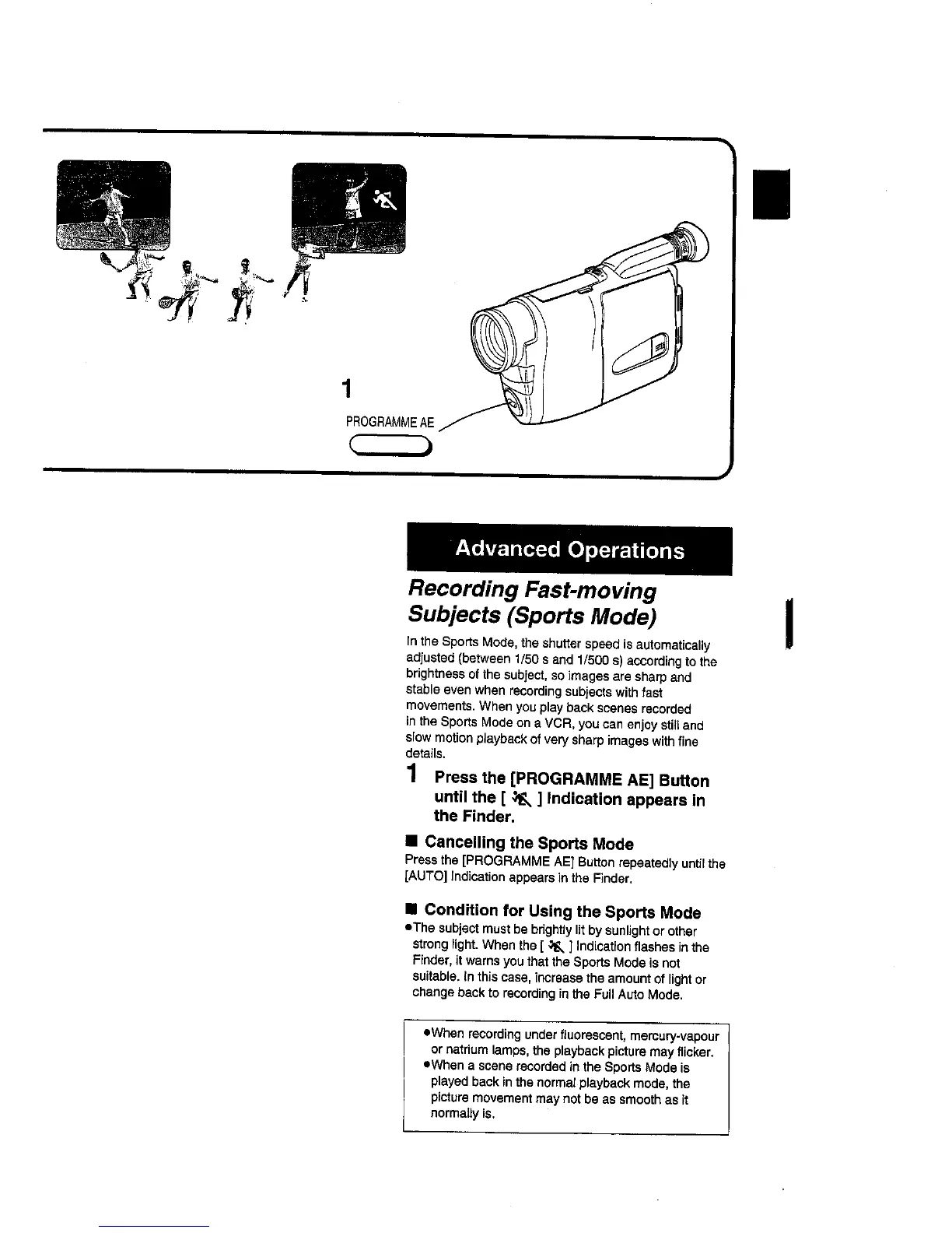 Panasonic NV-RX10A - Advanced Operations; Recording Fast-moving Subjects (Sports Mode)
