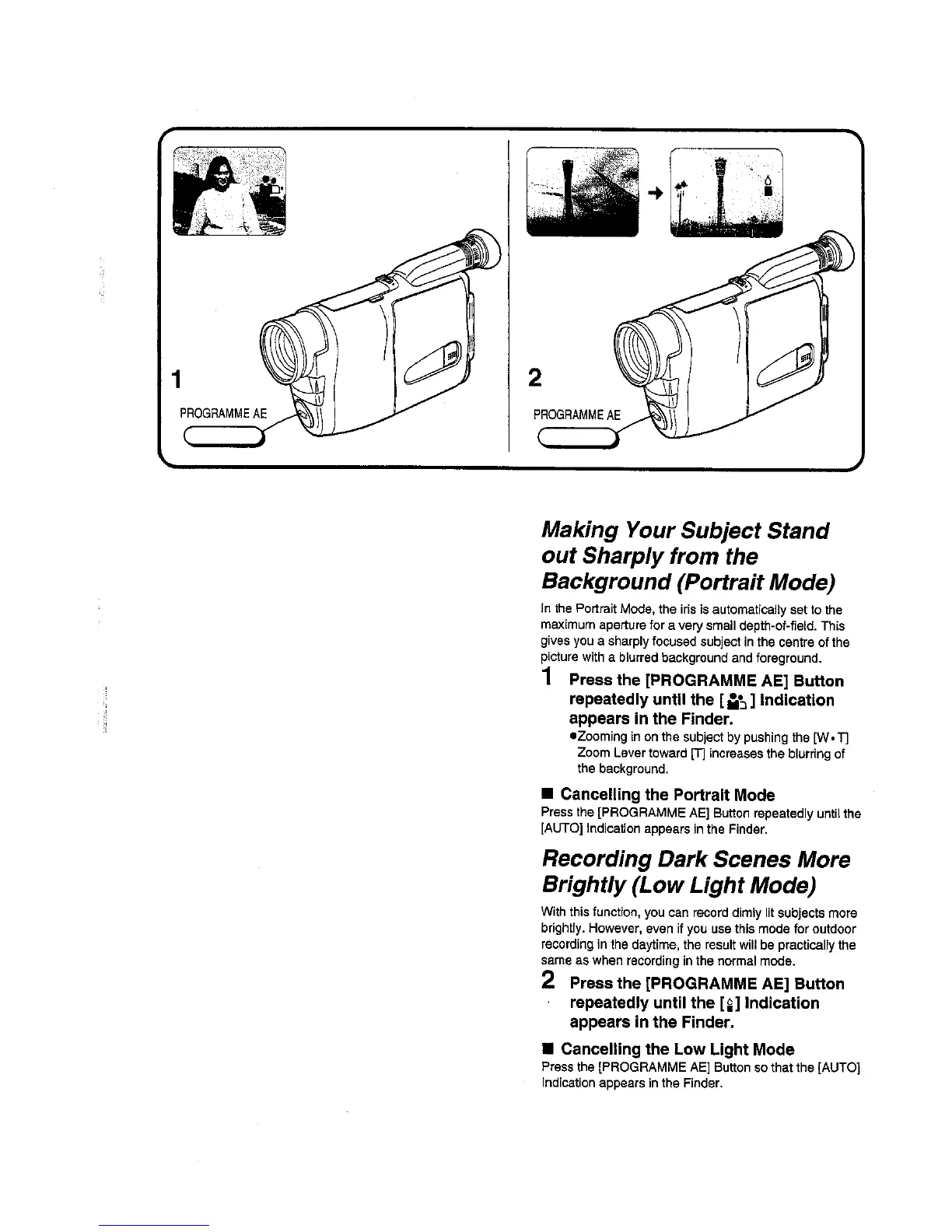 Panasonic NV-RX10A - Making Your Subject Stand out Sharply from the Background (Portrait Mode); Recording Dark Scenes More Brightly (Low Light Mode)