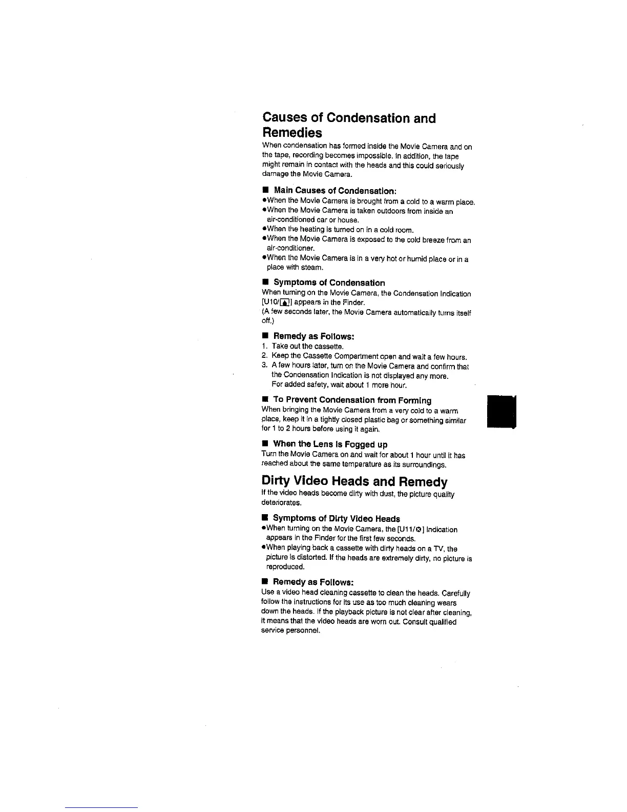 Panasonic NV-RX10A - Causes of Condensation and Remedies; Dirty Video Heads and Remedy
