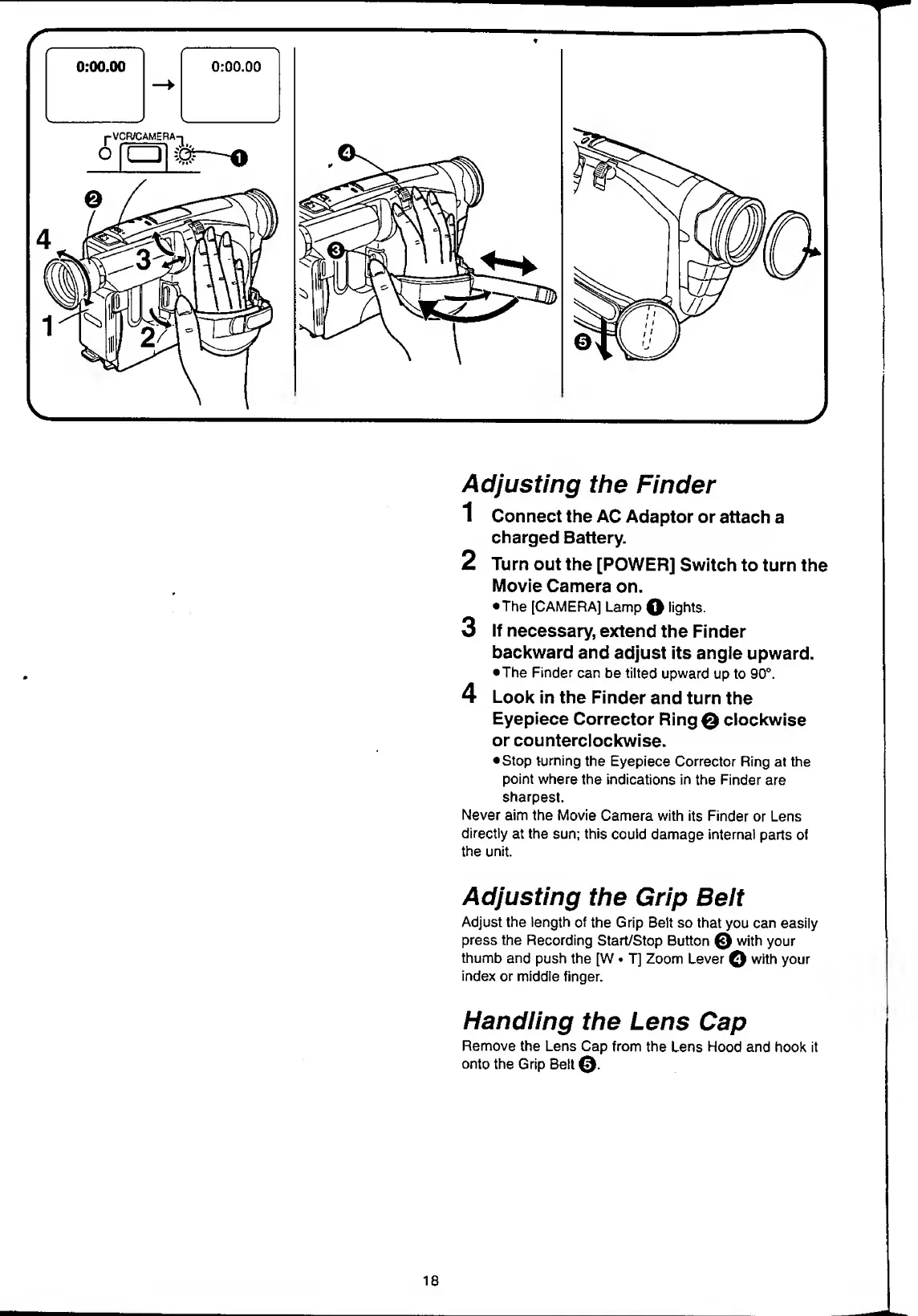 Panasonic NV-RX11A - Adjusting the Finder; Adjusting the Grip Belt.18; Handling the Lens Cap.18