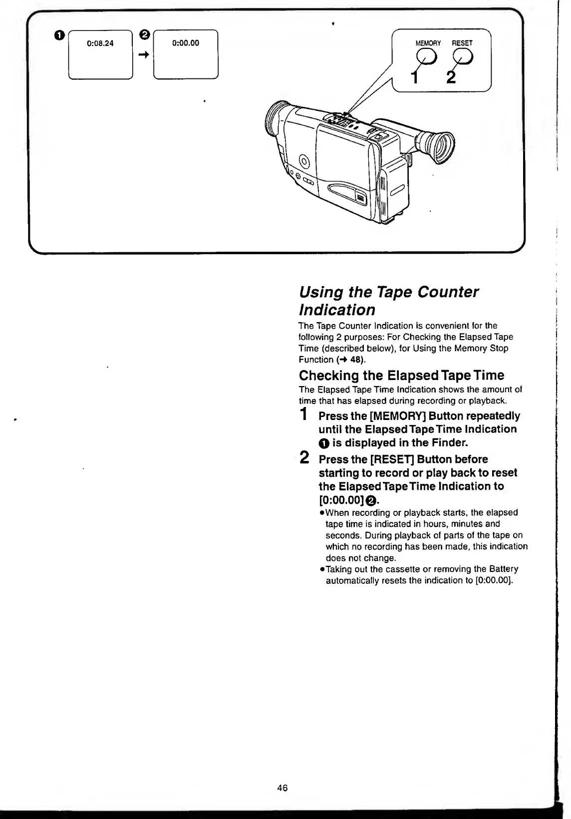 Panasonic NV-RX11A - Using the Tape Counter Indication.46; Checking the Elapsed Tape Time.46