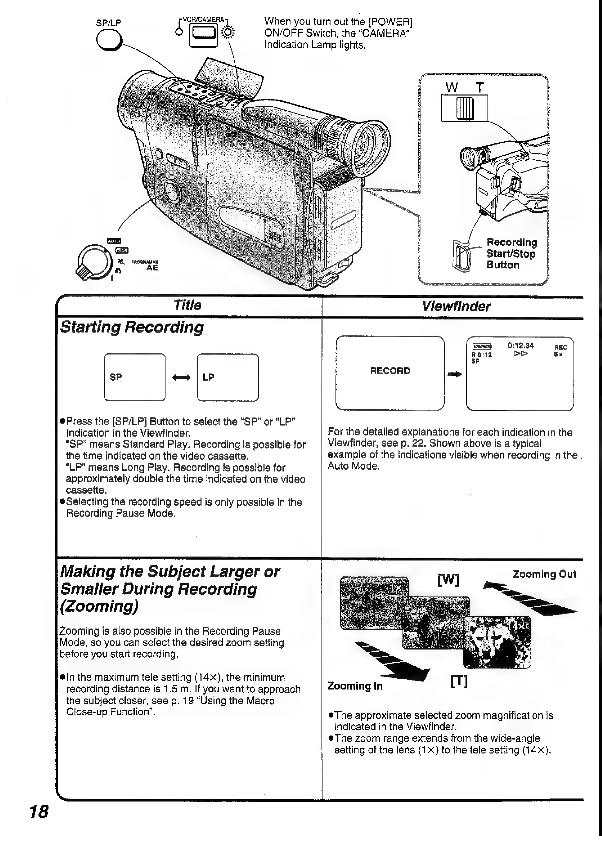 Panasonic NV-RX1A - Starting Recording; Making the Subject Larger or Smaller During Recording (Zooming)