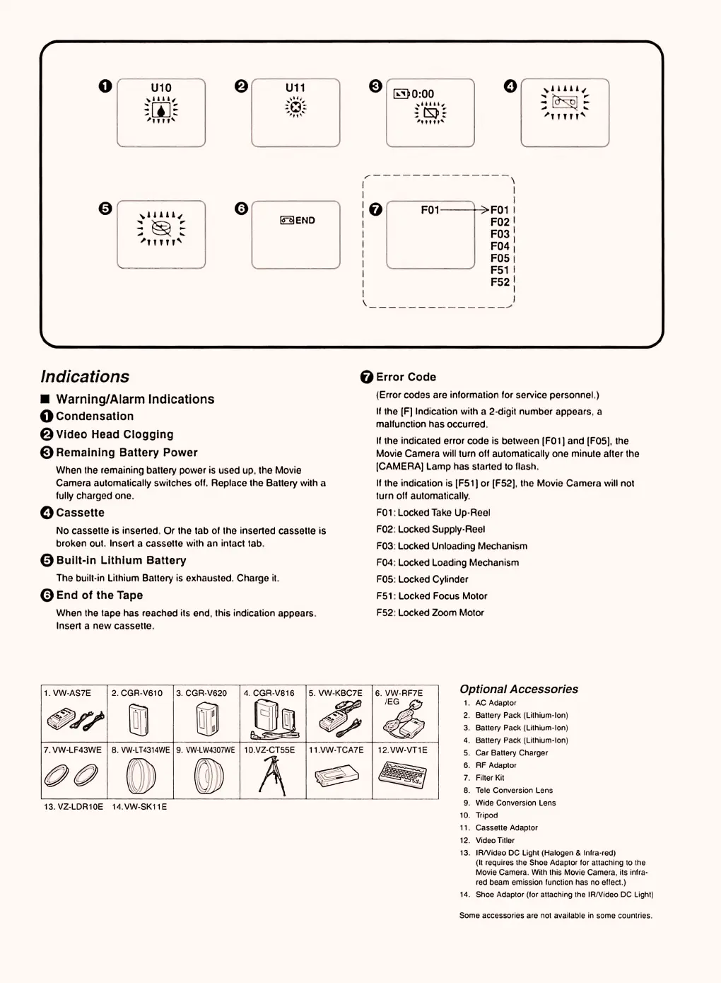 Panasonic NV-RX27 - Indications and Warnings; Warning;Alarm Indications; Error Codes