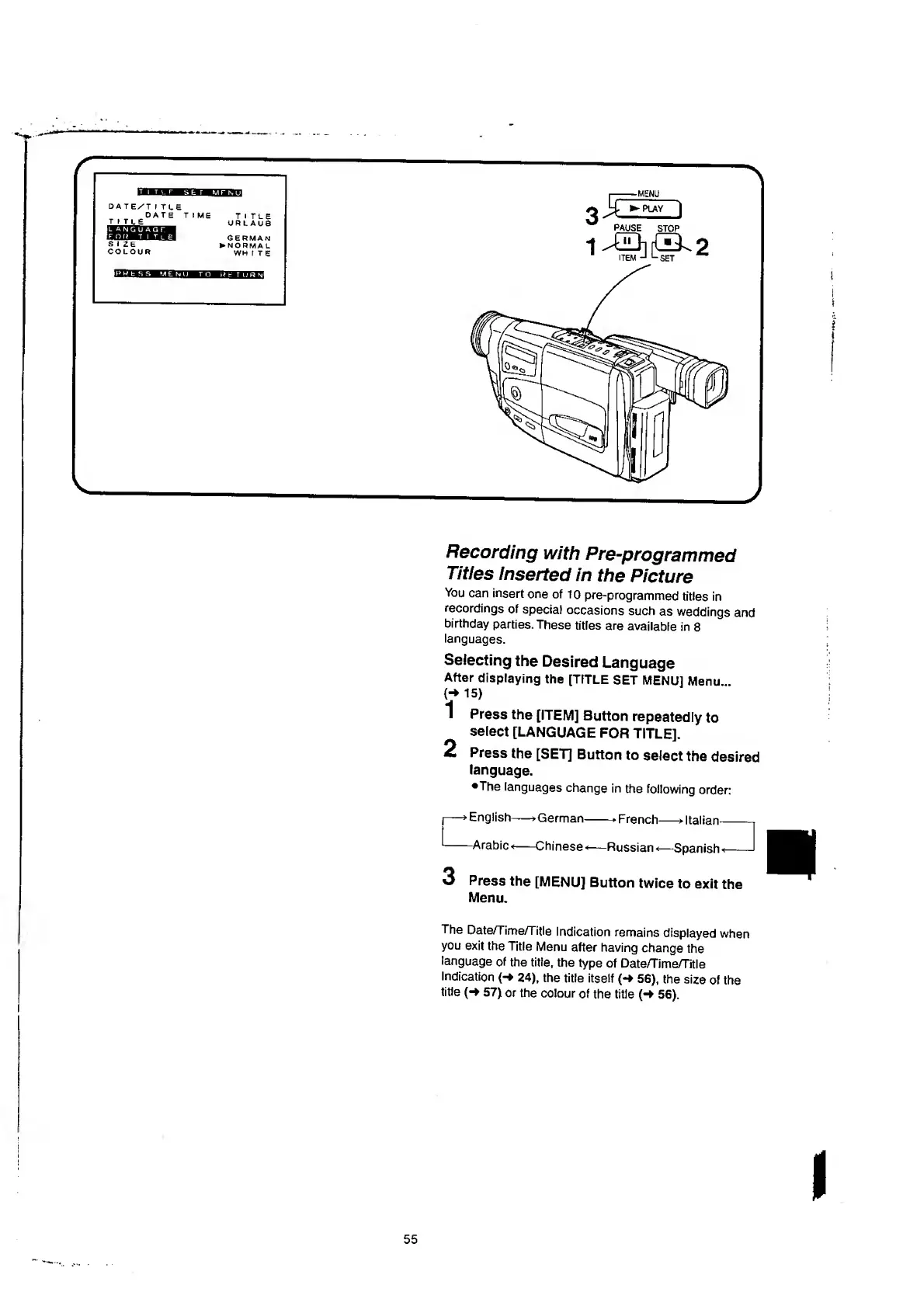 Panasonic NV-RX37A - Recording with Pre-Programmed Titles Inserted in the Picture; Selecting the Desired Language.55