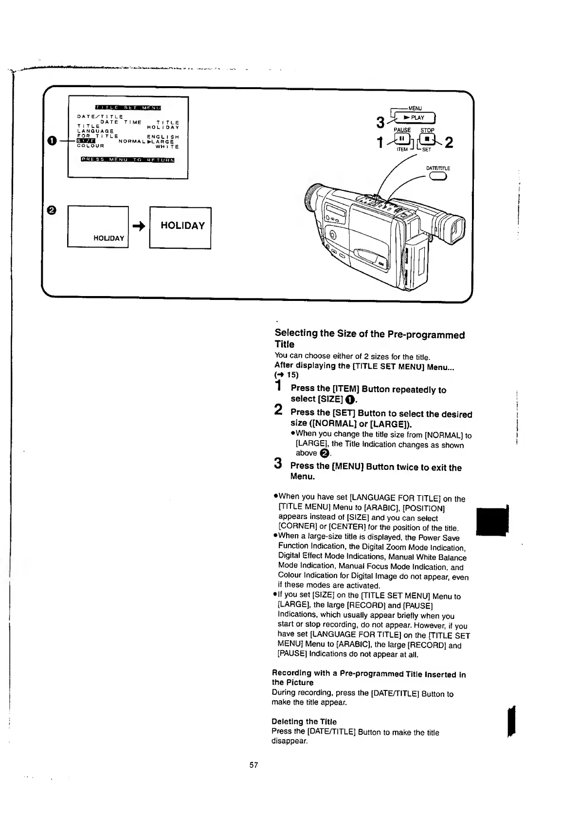 Panasonic NV-RX37A - Selecting the Size of the Pre-Programmed Title