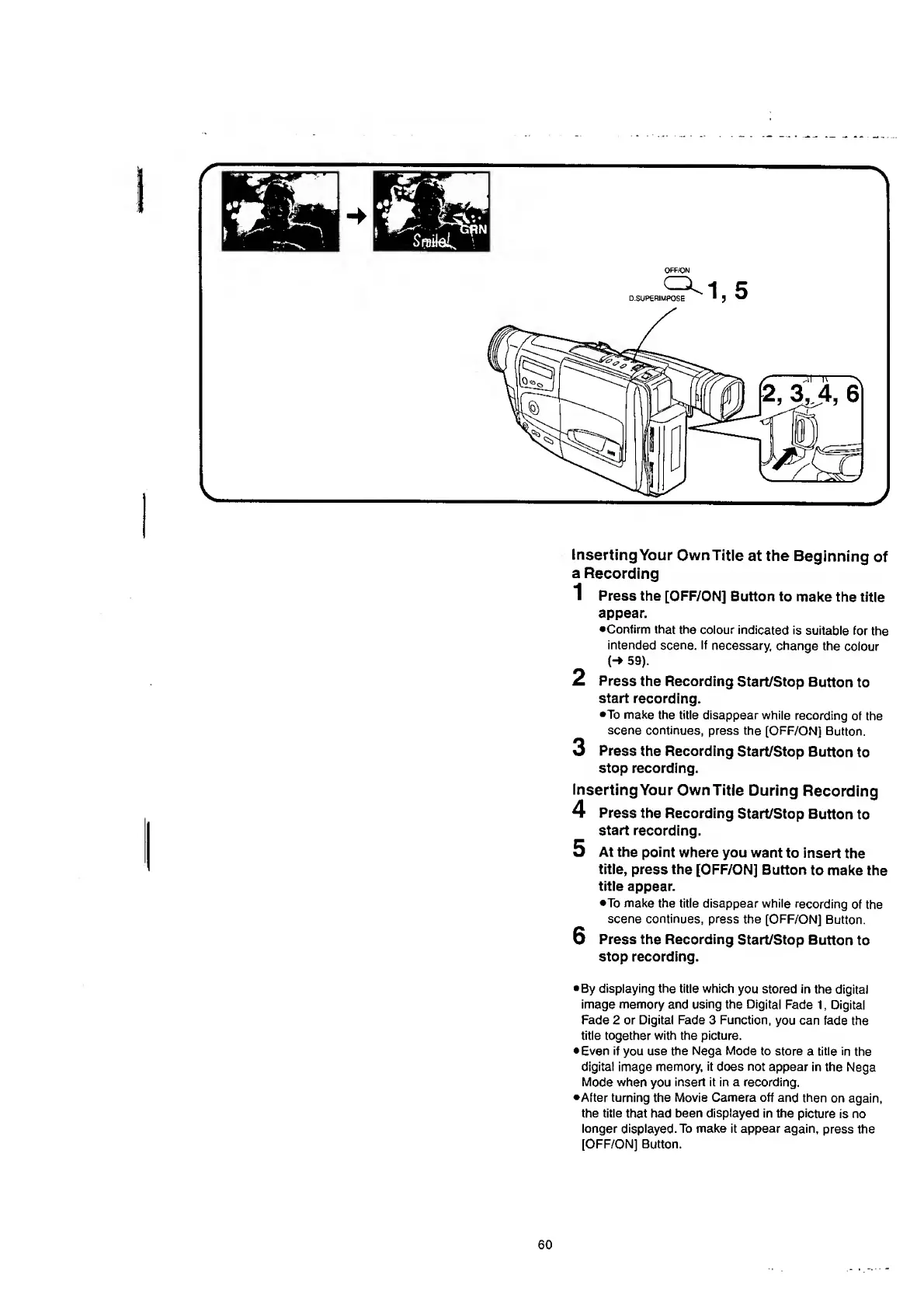Panasonic NV-RX37A - Inserting Your Own Title at the Beginning of a; Recording; Inserting Your Own Title During Recording