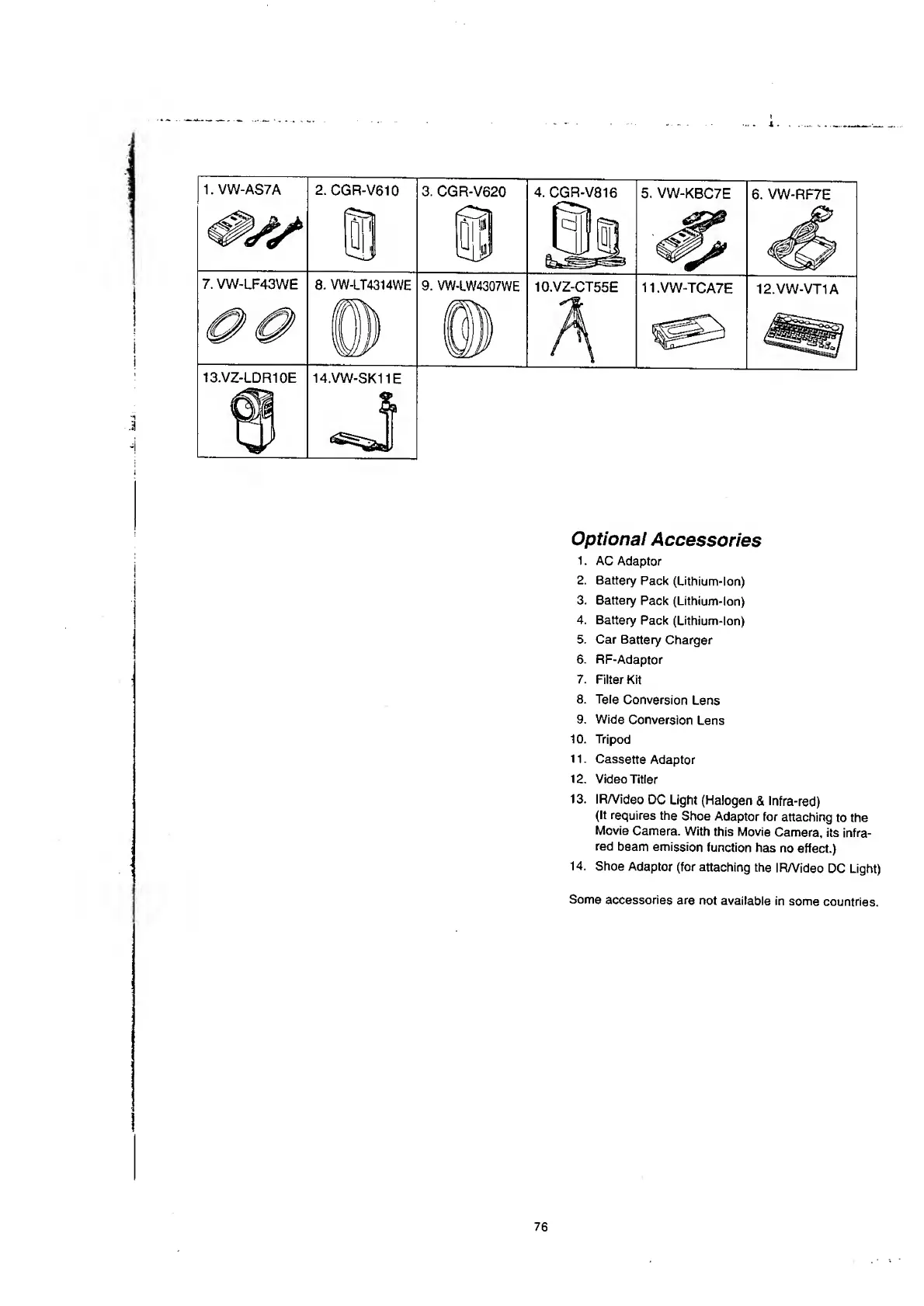 Panasonic NV-RX37A - Optional Accessories.70