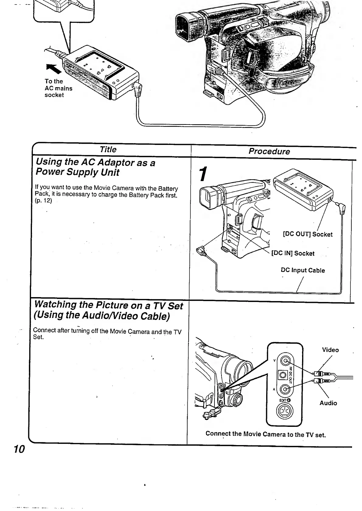 Panasonic NV-RX3A - Using the AC Adaptor as a Power Supply Unit; Watching the Picture on a TV Set