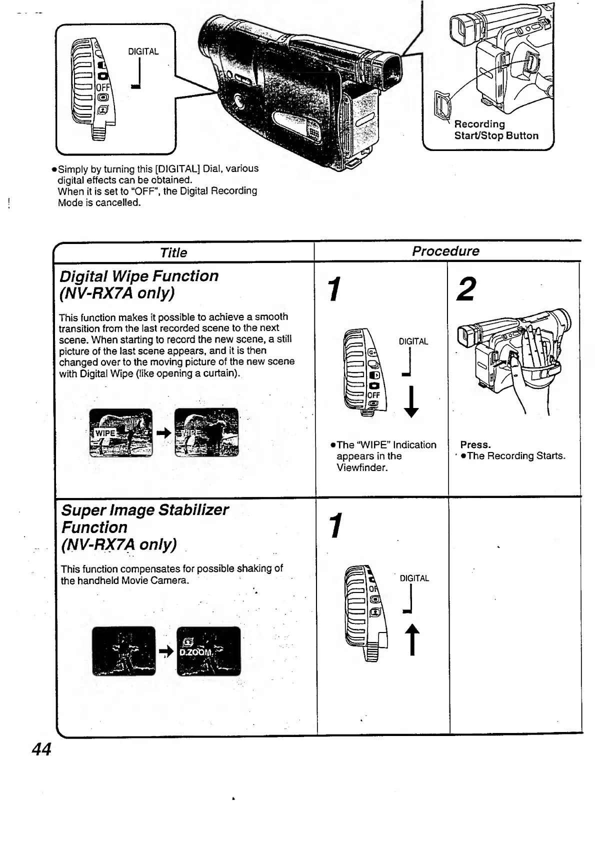 Panasonic NV-RX3A - Digital Wipe Function; Super Image Stabilizer Function