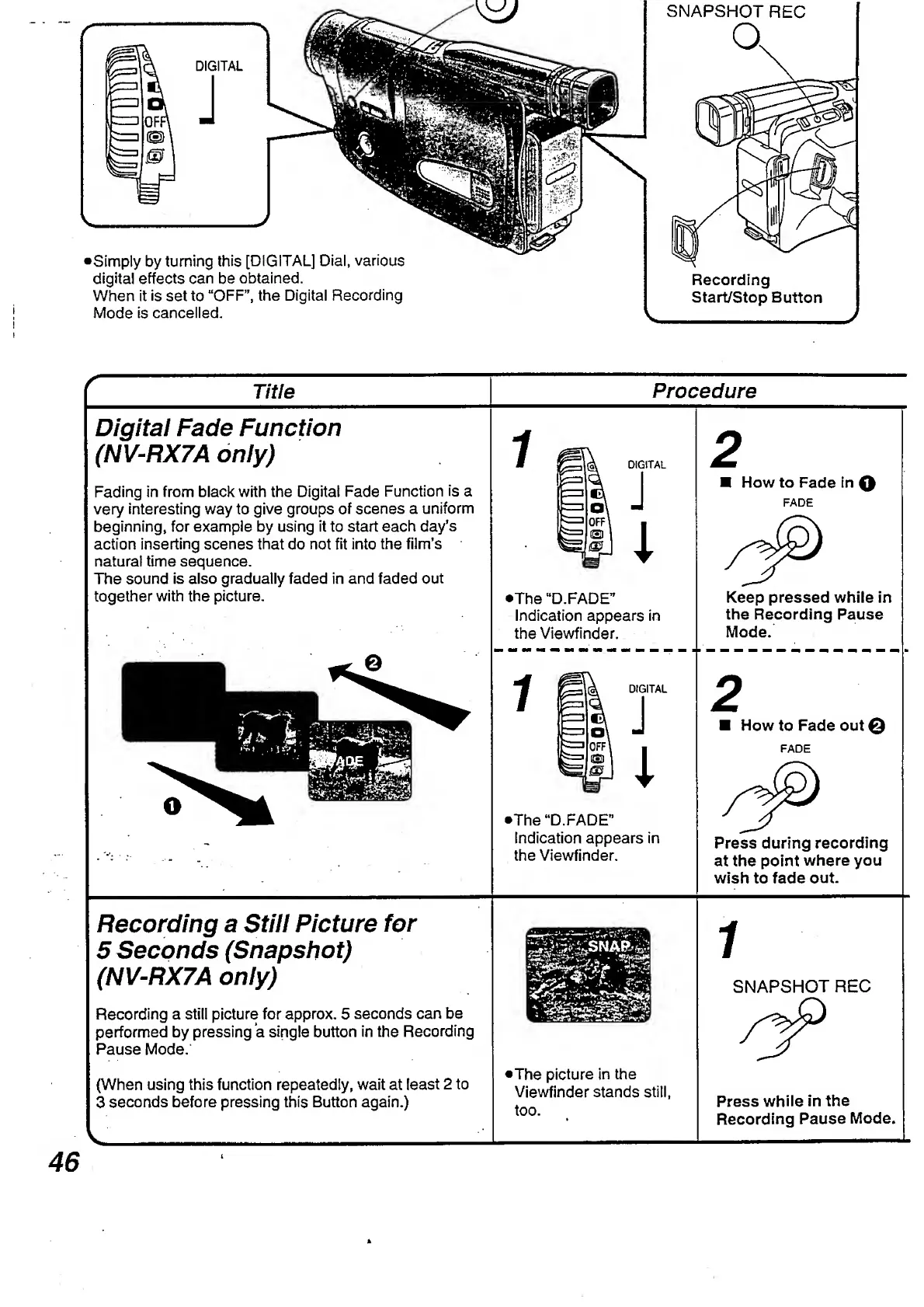 Panasonic NV-RX3A - Recording a Still Picture for 5 Seconds