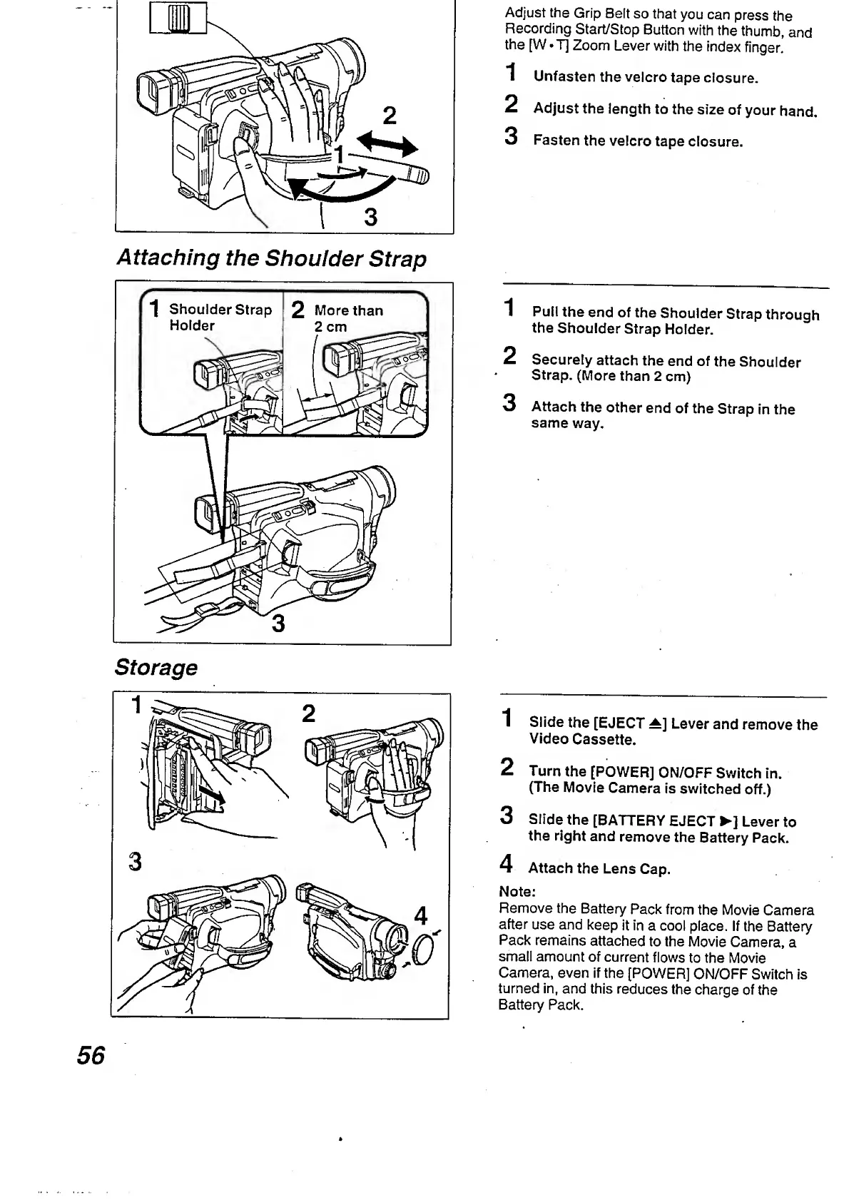Panasonic NV-RX3A - Attaching the Shoulder Strap; Storage